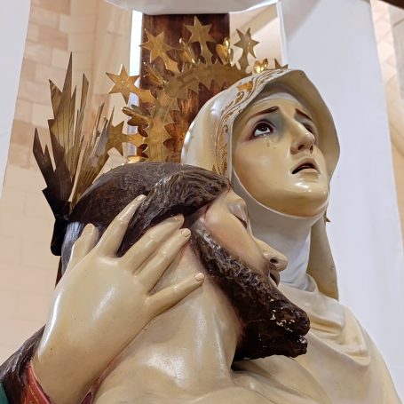 Representa el profundo dolor de la Virgen María al tomar en sus brazos el cuerpo sin vida de su Divino Hijo.