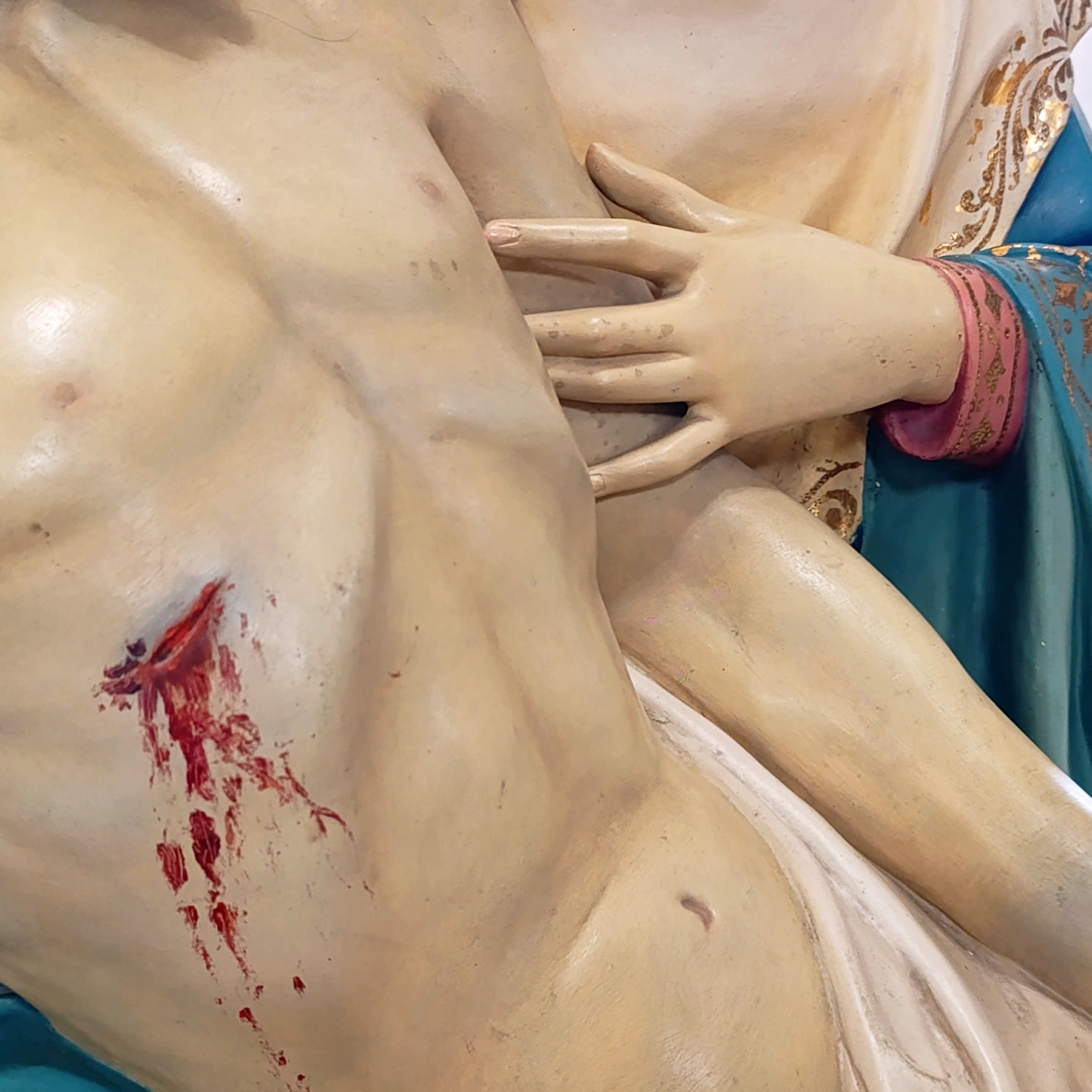 Representa el profundo dolor de la Virgen María al tomar en sus brazos el cuerpo sin vida de su Divino Hijo.